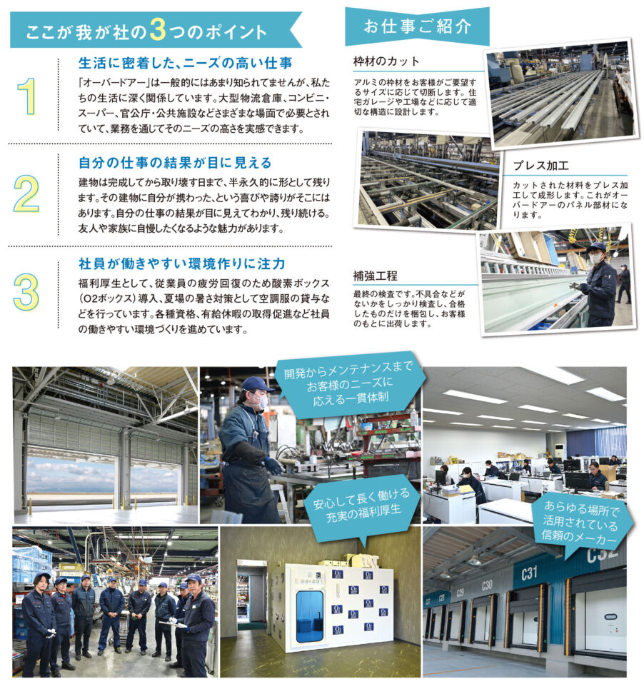 事業内容 オーバードアー等の販売、製品開発、設計、製造、施工、メンテナンス事業